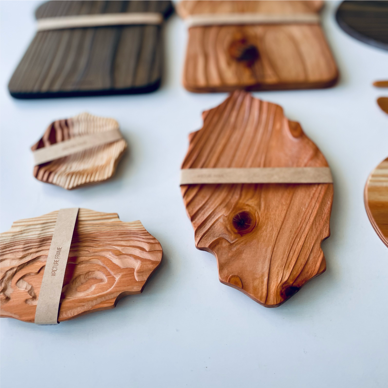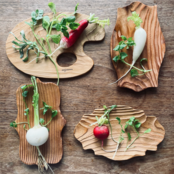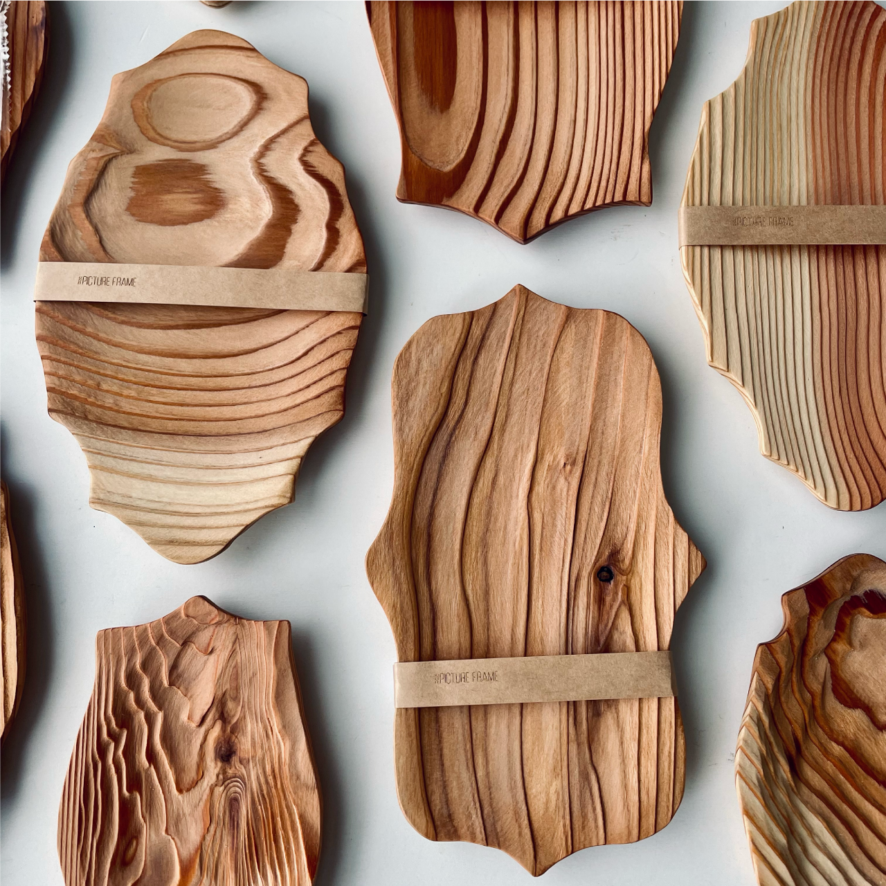 どれもちょっと不思議な形の木皿には、