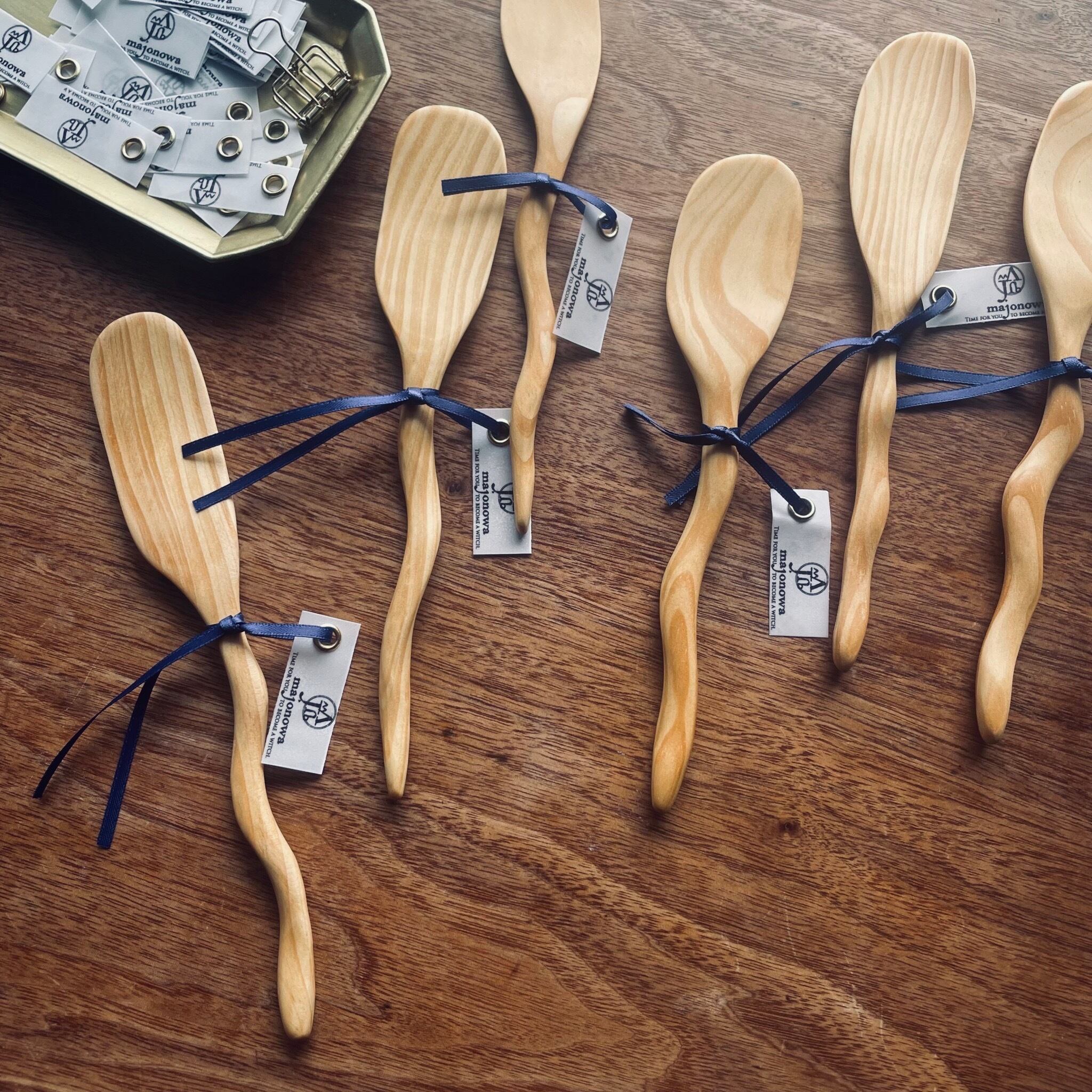 くねくねした木のスプーンにふれたらリラックスのお知らせ。