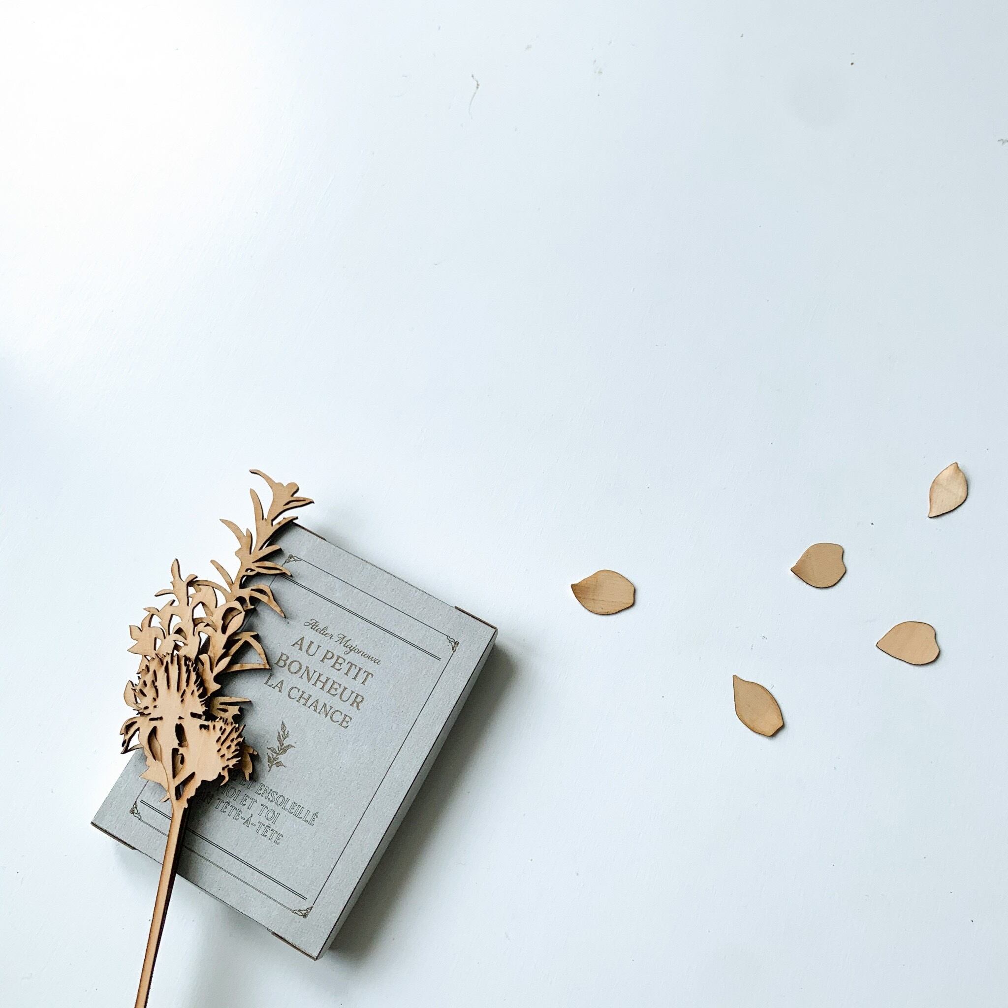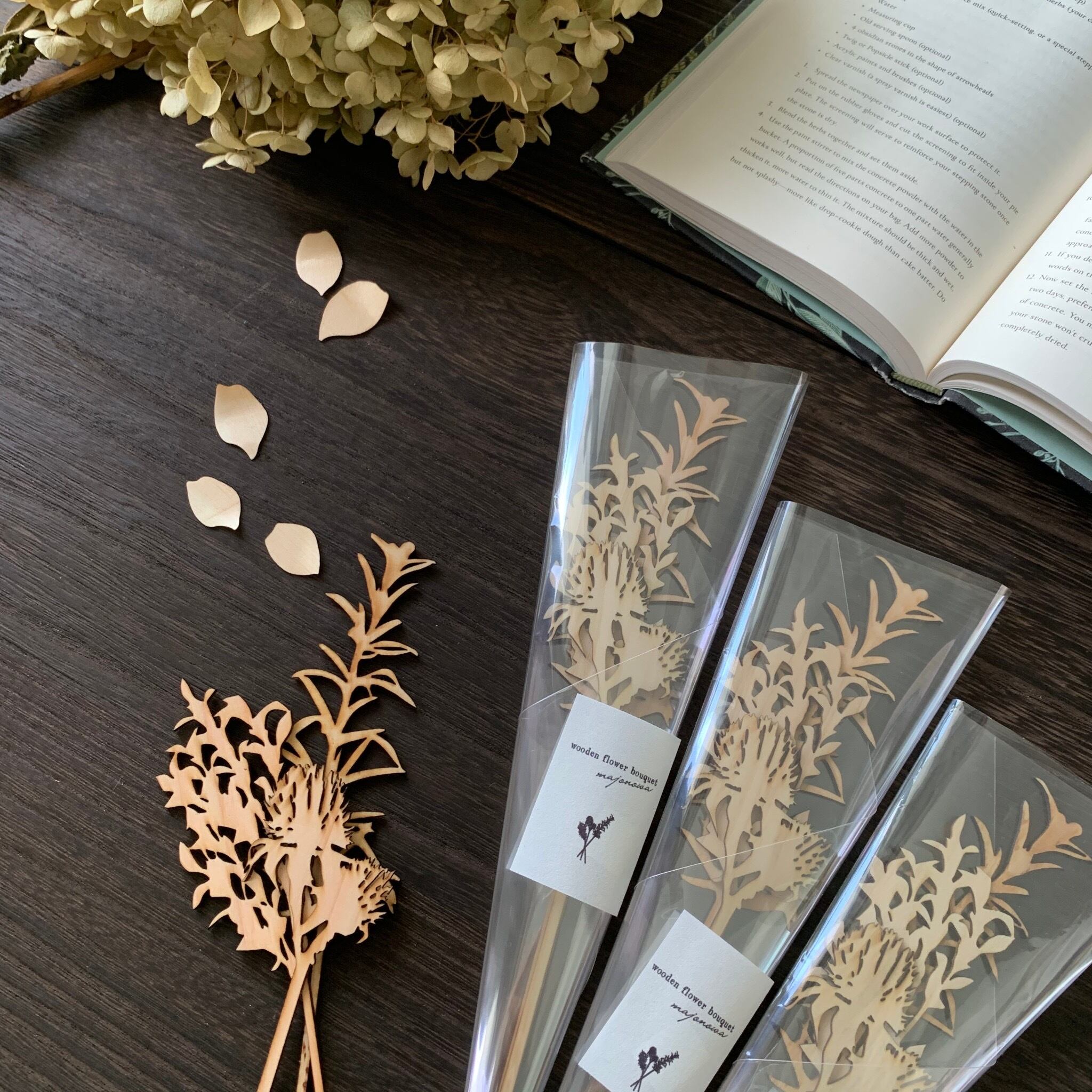 1枚ずつ曲木細工された木の花びら。