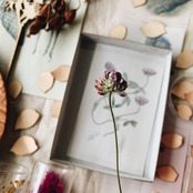 植物標本をイメージしたシャーレに入っています。